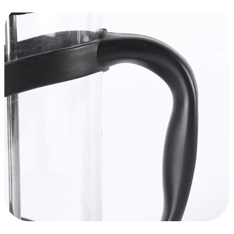 This Glass French Press Espresso brews 8 coffee cups which is equal to 1000ml. A durable heat-resistant borosilicate glass carafe beaker sits in a stylish insulated plastic frame which makes pouring coffee easier and prevents wobbling.