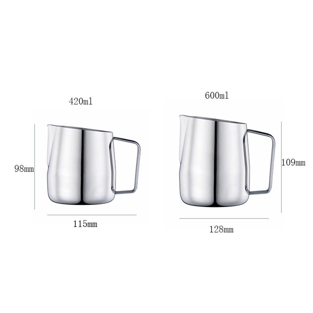 This milk steaming pitcher, is made of high quality food grade 304 stainless steel, which is heat resistant and durable. The 0.6mm thickness of the jug offers excellent temperature control and thus prevents the milk from burning. Easy to wash, wash it under warm soapy water just in a moment, dishwasher-safe.