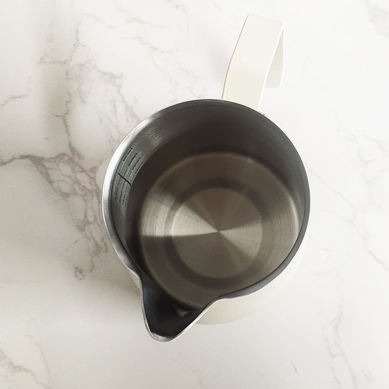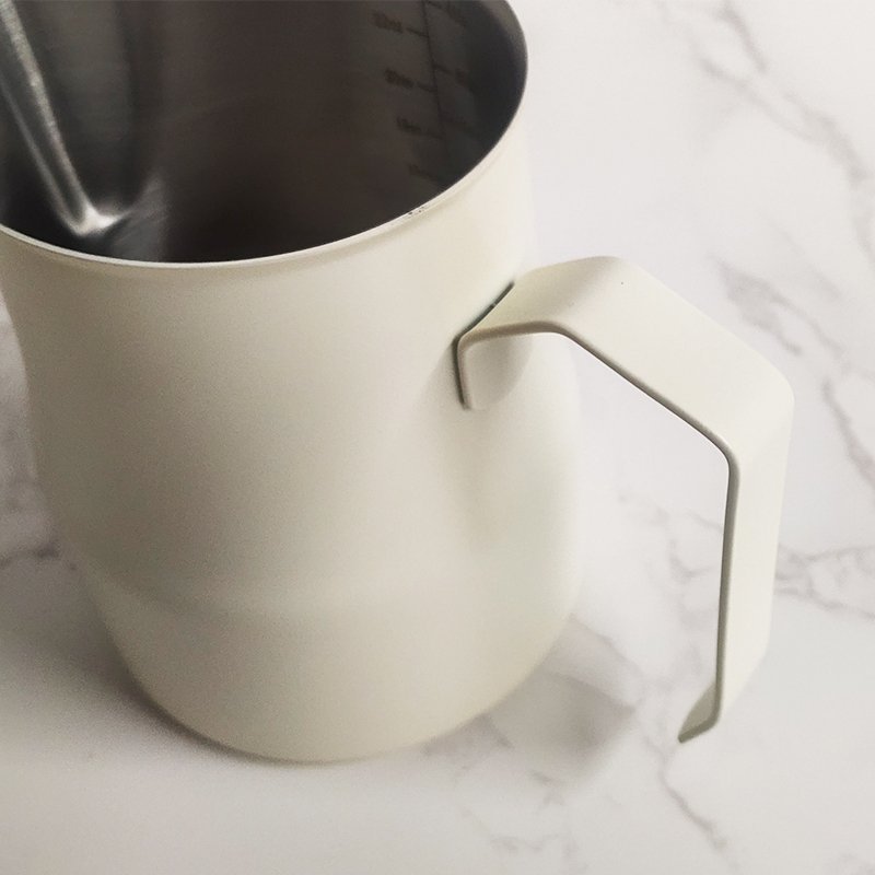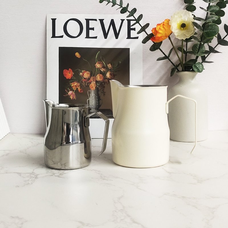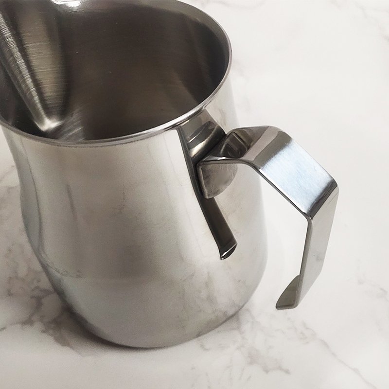 This milk frother pitcher is made of high-quality 304 stainless steel, which is rust proof, stain proof, and heat resistant. It has a stylish appearance and is very easy to clean after use. Unique narrow mouth design that prevents liquid leakage from the kettle, making the coffee pattern beautiful.